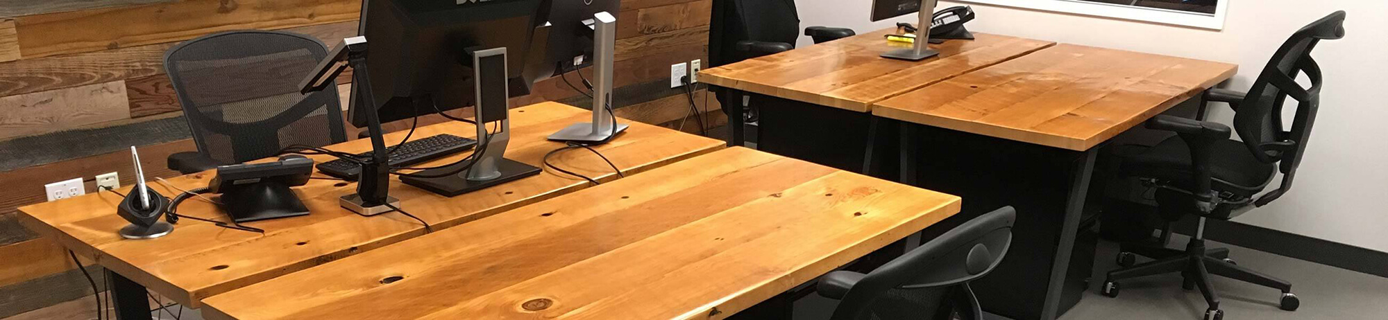 Your work habitat is important, be inspired to be there! Build your dream commercial or home office with sustainable custom furniture inspired by nature. We have beautiful hardwood desk tops that go great with sit/stand bases for your ergonomically correct work space. Customize any desk or work station with shelves, cabinets, and drawers to fit your needs. Let us be a part of your specialized project to create your own unique work space.